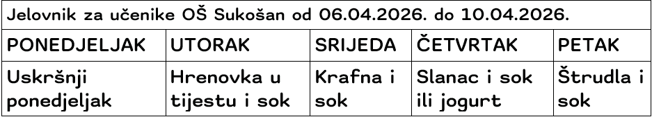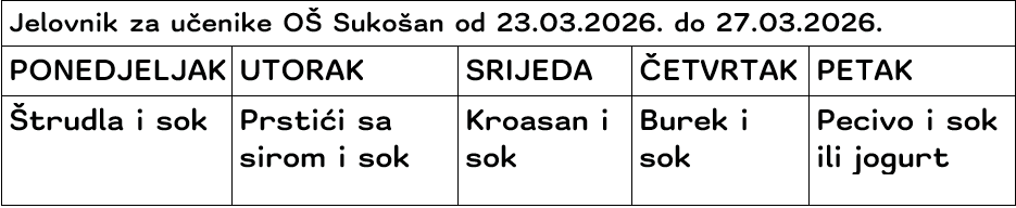 Poštovani, obavještavamo vas o terminima testiranja djece za upis u prvi razred osnovne škole: - Za OŠ Sukošan testiranje će se provoditi u razdoblju od 7. do 10. travnja te od 14. do 17. travnja. - Za PŠ Debeljak testiranje će se provoditi u razdoblju od 21. do 24....